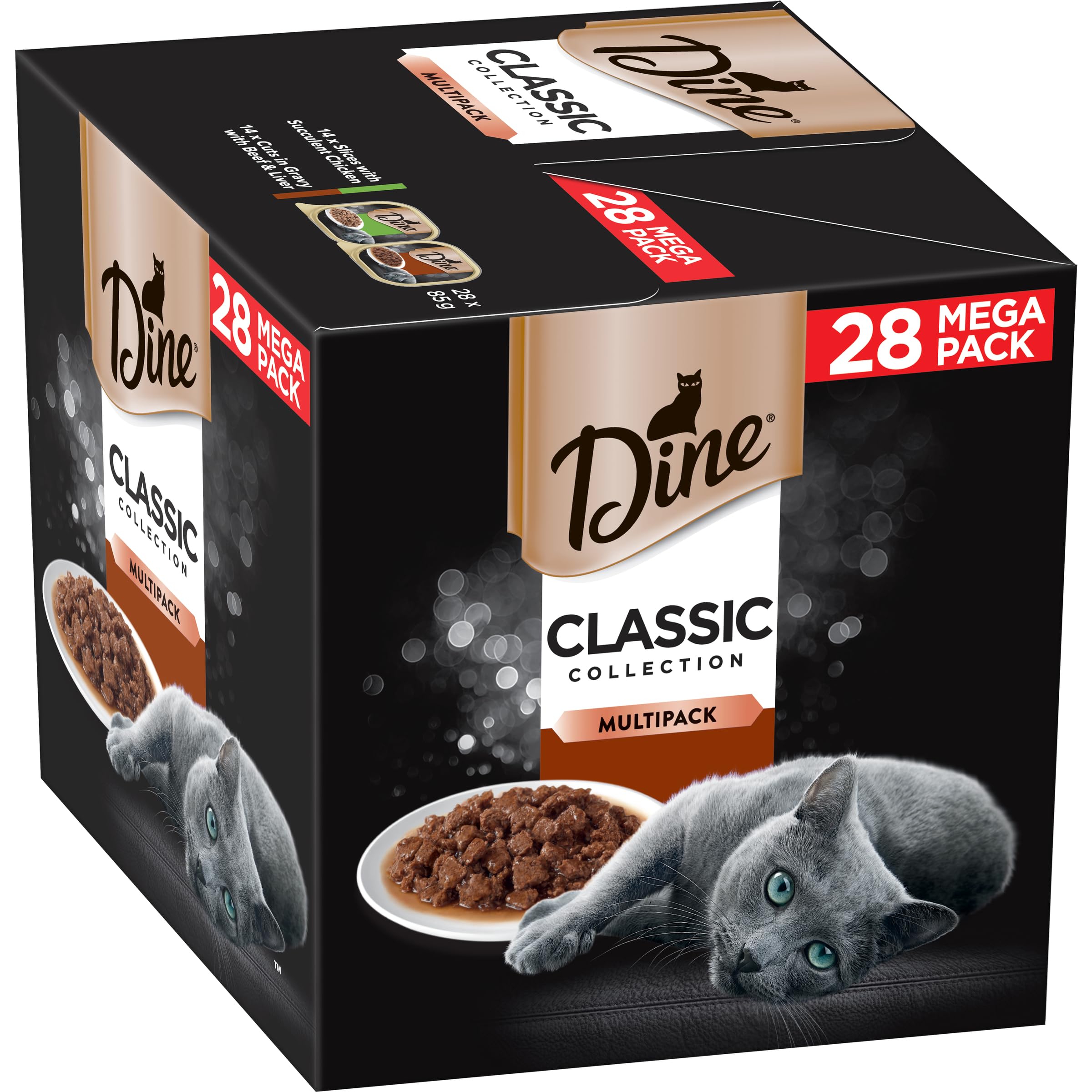 DINE Mixed Multipack Wet Cat Food, Succulent Chicken, Beef & Liver Tray 85g, 28 Pack